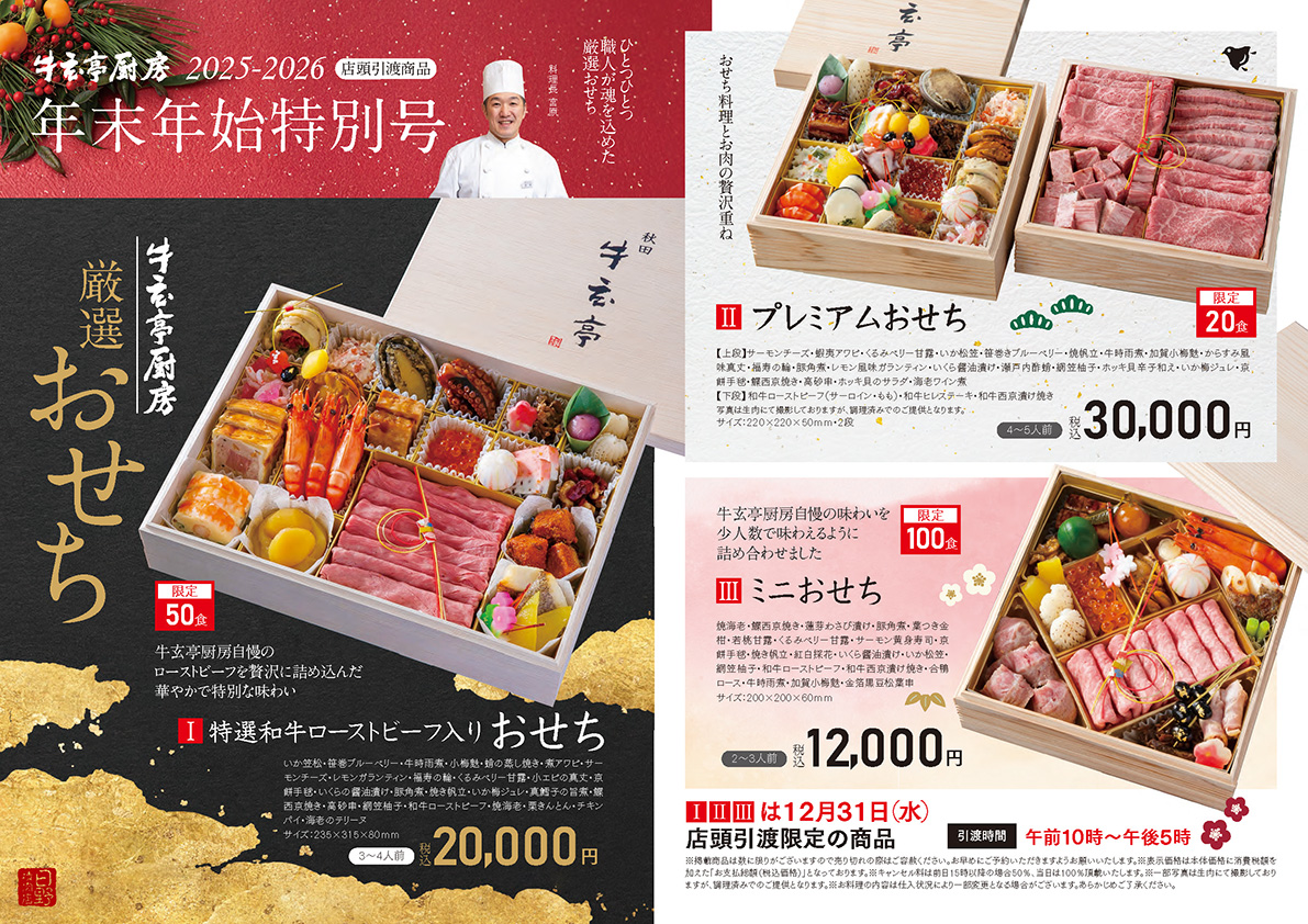 精肉店として家庭の食卓の笑顔を追及し、外食産業へと発展し人々の喜び溢れる団欒のシーンを追及し、この度、弁当宅配ブランド「牛玄亭厨房」の開設により、これまで以上に地域の皆様の近くに寄り添い、大切な方との絆を育むおもてなしを追及してゆきます。